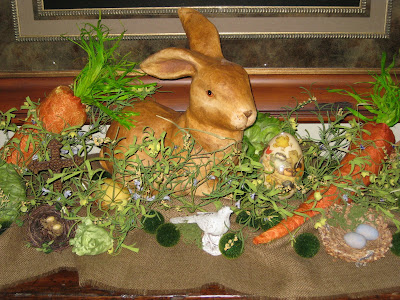 Thought I would share a little of my Easter decor with you. Here is that cute Lila Bunny who followed me home from Moutrie, and you can see the garland that we had to work hard to get! But, it was worth it! I love it all put together. This is on the foyer table coming in my front door.