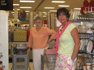 I did not go off yesterday with the notion of buying anything. But these 2 INSISTED that I needed this set of dishes. And, not just the dishes, but all the accessories to go with them…platters, bowls, glasses, decor, etc. All in a beachy theme. Can you see it all laid out here on the floor? Shameful!