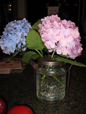 On my last post, I showed you some hydrangeas from my yard. I had them in a vase like this one in the pic below. I wondered if anyone would notice it, and comment. And sure enough…my eagle-eyed friend, the newest California girl, Teresa, noticed it and commented. These (I have 2) are my new favorite vases. Here are the components. I found these at that greatest of all stores…TJ**XX. There they were, just sitting on the shelf, waiting for someone to appreciate their wonderfulness. And I did! And I took them home with me. When I checked out, the cashier said,” What ARE those things, and what are you going to do with them?” I told her they were for arranging flowers. And that they were called ‘frog jars’. She said that they had all been wondering what they were…and nobody knew. Then she said, “Well, how did YOU know what they were?” Now how would you answer a question like that? We have all seen ‘flower frogs’ like this… I mean, how hard would it be to figure out? What else could it be? What else would you ever stick through those holes? And, whatever you stuck through those holes, why would you need them to go into a jar…that could hold water? If you put those 2 clues together…what else would you come up with? Well, she called together all the other cashiers at the checkout, at registers #1, #2, #3, #4, and #5 to come and see what she had discovered. This did not make me a very popular shopper with the l-o-n-g line of people behind me who were waiting to check out, either. Oh, well…at least I did my part to educate the masses that day, because everyone behind the counter and in line knew all about my 2 flower vases!