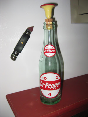 Once, when Ian went to a junk store, he came home with this bottle. It’s an old Dr. Pepper bottle. Dr. Pepper—the second best drink on the planet. What’s first? Sweet tea with lemon, of course! ANYWAY…he also had this little sprinkler top. I remember when Mom used to sprinkle clothes and store them in the refrigerator. Why did folks do that? Do wrinkle fall out better if they are chilled? Or is it that the ironer is so hot from the heat of the iron, the cool clothes lower their temps?