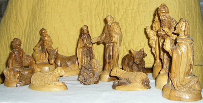 This set I have had since before I was married. Mom and Pop bought it when they went on a trip to the Holy Land. It is made of olive wood and the carving is quite intricate.