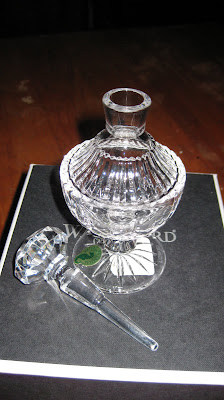 Over the last year of her life, Mom was in quite a bit of pain from her arthritis and issues with her bladder. She never went out alone. If she needed to go shopping, Joy always took her. She really was not strong enough to go by herself. But, somehow, some way…she managed to get 2 pieces of Waterford Crystal, and get them into her gift closet. We will never know when she did it…or why she did it so far in advance. Why did she have them pushed so far back in her closet? We never went in her closets before she died. It is surprising that we found them at all!