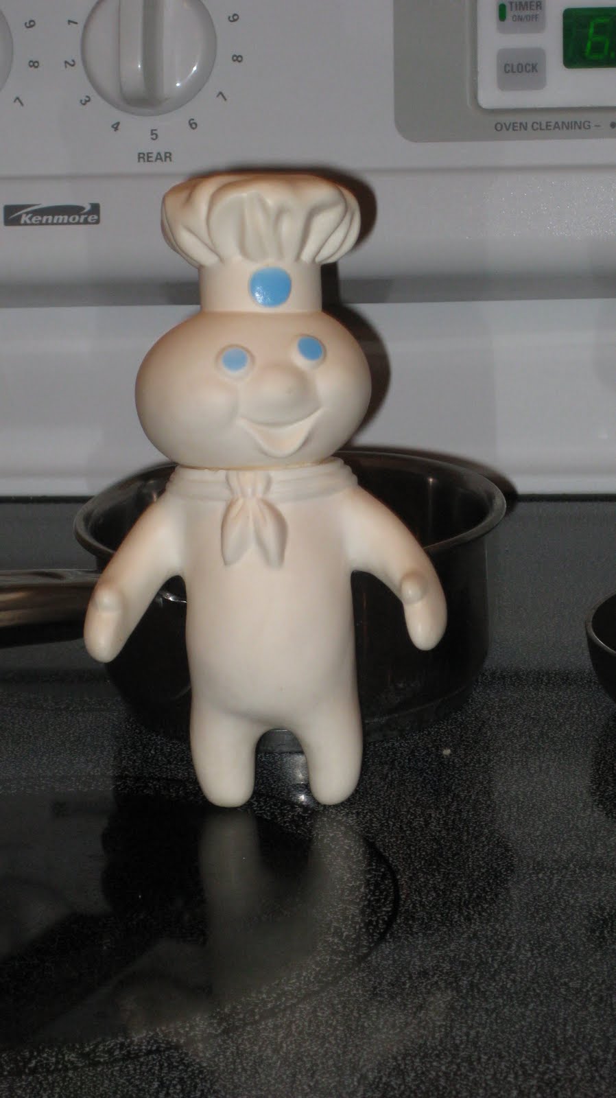 This all got started because Mom was sick. I do not remember what was wrong, but she had a terrible time with migraines for a while, so it could have been that. Anyway, Joy and I were at church, and Mom called to leave us a message. She had taken some pain medicine, and was not making a whole lot of sense to our church secretary. We came home, and she still was not thinking or talking coherently. She tried to touch one of us and she kept missing. Even though it was not funny…it was funny to us. This was so unlike our Mom. She was always in complete control. We said, “Mom, you look like you are trying to poke the Pillsbury Dough Boy!” (Do you know the old commercial where some one pokes him in the tummy with their finger, and he giggles?) Well, that was about the time it first came out, and we thought it was hilarious! We took care of her and she was better the next day. When we told her about it later, she said she did not remember doing that! And, we assured her she did