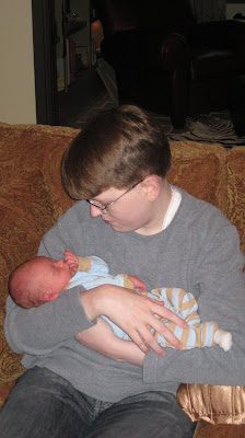 Ian just wasn’t sure he wanted to hold the baby, but Joy put JT in his arms…does he look uncomfortable or what?