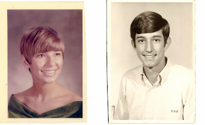 Oh! My! How time does fly! Found these while going through some old pics today. I thought my boys may get a kick out of seeing how their parents looked when they were seniors in high school. Don was a Senior in 1969, and I was a Senior in 1971. The picture of us together was made in 1970.