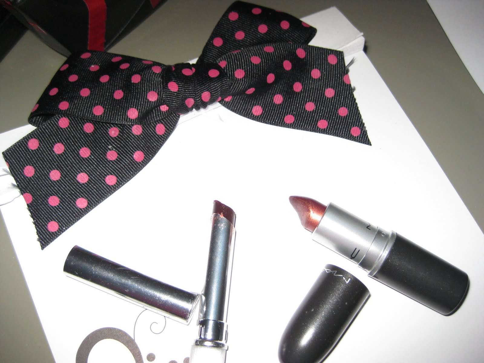 OK….here’s mine. The one on the Left is a Cl*n*q*e lip gloss that I use occasionally. The other tube, on the Right, is my favorite. It is by M*C…the color is ‘O’.