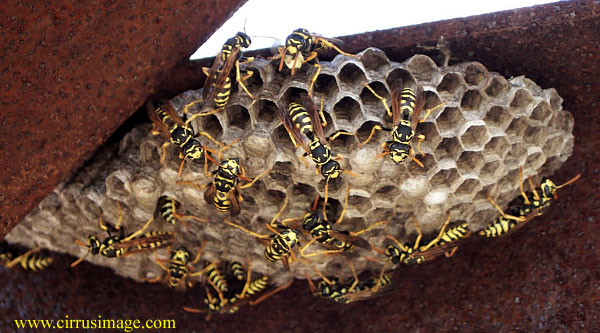 And then, one day…he told me the ‘things in the cells’? babies? wasplettes? were coming out of the cells. And they were. It looked as if they were pushing out. And, indeed that is what they were doing. Being born, I suppose. After they opened up the hole they would struggle up a little bit at a time and eventually they began to fly away. The workers were all gone. And, all movement had ceased in the cells that didn’t open. Only about 10 out of maybe 150 didn’t come out.
