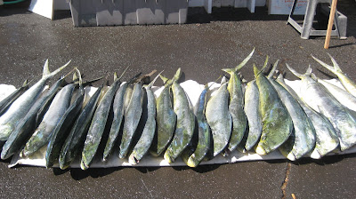 While we waited at the dock to board our boat, another boat came in from an early morning fishing catch. I know that some of these are Mahimahi, the rest are just fish.